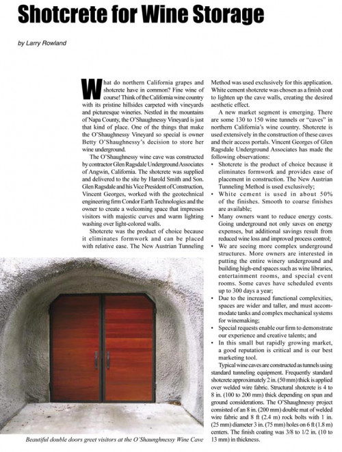Industry & Agriculture|Shotcrete for Wine Storage Infrastructure|Traffic safety - California Tunnel Infrastructure|White Concrete Barrier Article from 2008 Commercial Building|Super Floors for Supermarkets